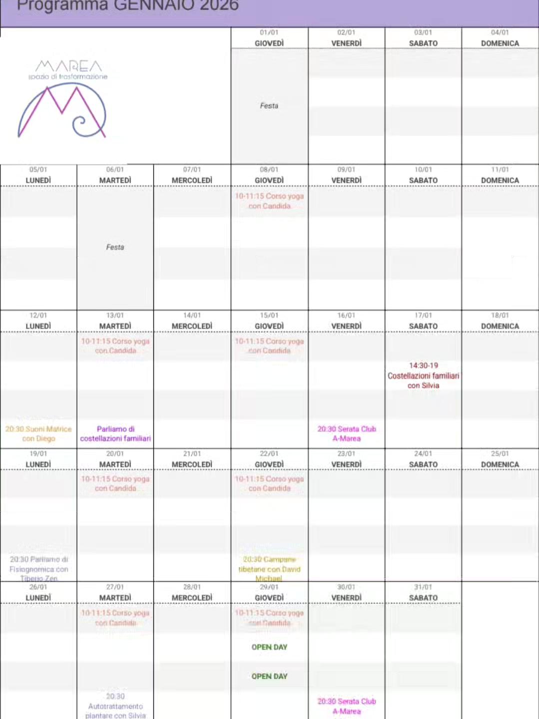 Insieme abbiamo dato vita a MAREA, spazio di trasformazione. In un palazzo antico, nel cuore della città abbiamo realizzato un ambiente accogliente e sereno, immerso in un'atmosfera quieta e rilassante per promuovere l’introspezione e la connessione profonda con se stessi e con gli altri.